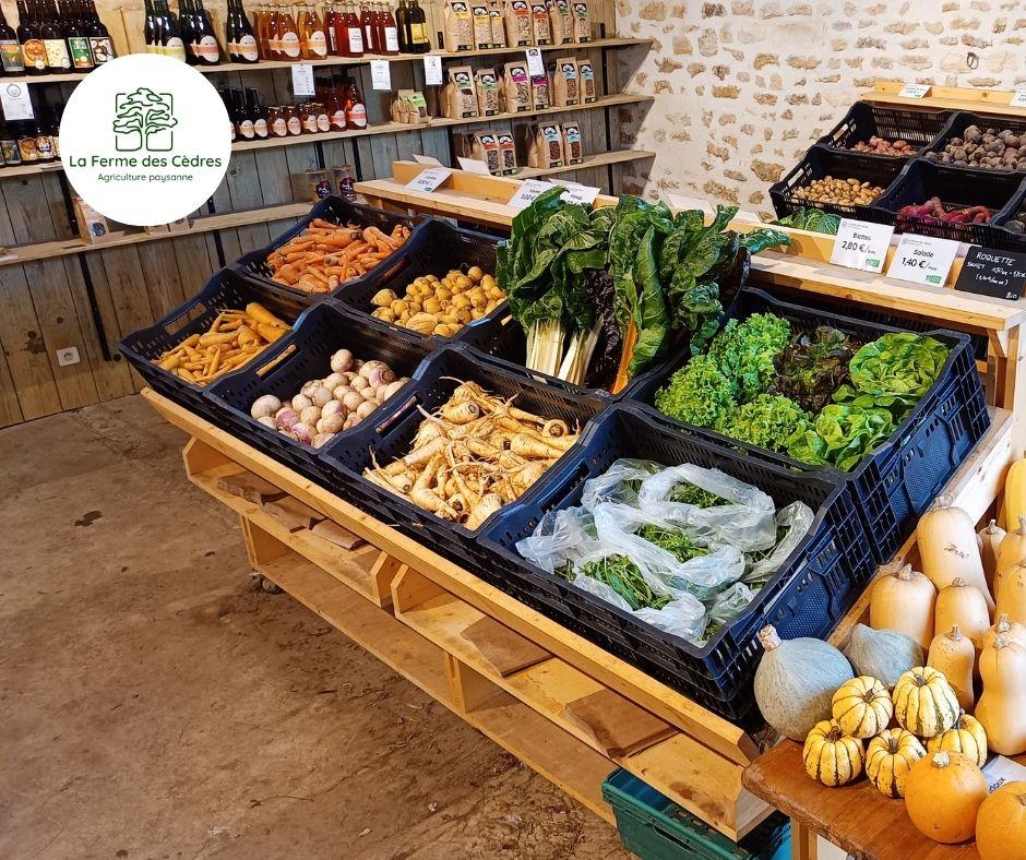 La Ferme des Cèdres cultive une grande variété de légumes et de fruits, ainsi que des œufs en agriculture biologique, dans le plus grand respect du vivant et de la biodiversité environnante. Comment ? En préservant les sols grâce à un travail peu mécanisé, et leur écosystème, en plantant des haies et des centaines d’arbres au cœur de leurs cultures…